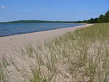 Pancake Bay is a sheltered, south-facing bay on the eastern shore of Lake Superior, north of Sault Ste. Marie, Ontario, Canada. A 5.5-kilometre (3.4 mi) sand beach lines the bay of which 3.5 km are within the park boundary. The bay is sand filled and shallow, which helps to warm the lake. Ancient beach ridges are visible more inland. The ecology of the region is characteristic of the Great Lakes-St. Lawrence transition forest, but is a northern shelter for more southerly flora and fauna.[1]
