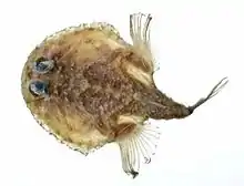The pancake batfish (Halieutichthys aculeatus) belongs to the batfish family Ogcocephalidae.[2] Their distributrition includes western Atlantic, North Carolina, northern Gulf of Mexico to northern South America. They inhabit a subtropical, sandy, reef-associated, and 45โ820 m deep environment.[3]