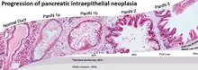 - ↑ Adsay V, Mino-Kenudson M, Furukawa T, Basturk O, Zamboni G, Marchegiani G, et al. (January 2016). "Pathologic Evaluation and Reporting of Intraductal Papillary Mucinous Neoplasms of the Pancreas and Other Tumoral Intraepithelial Neoplasms of Pancreatobiliary Tract: Recommendations of Verona Consensus Meeting". Annals of Surgery. 263 (1): 162–77. doi:10.1097/SLA.0000000000001173. PMC 4568174. PMID 25775066.