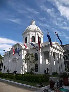 The National Pantheon of the Heroes (Spanish: Panteón Nacional de los Héroes), whose full name National Pantheon of Heroes and Oratory of the Virgin of the Asuncion (Spanish: Panteón Nacional de los Héroes y Oratorio de la Virgen de la Asunción) is a building and landmark of Asunción, Paraguay, and a national monument of Paraguay. It is located between the Palma and Chile streets in the downtown of the capital of Paraguay, and it is considered of great architectural, artistic and cultural heritage.