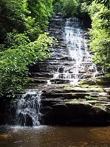 Panther Falls is the first of two waterfalls on the Angel Falls Trail in Rabun County, Georgia. The second waterfall on the trail is Angel Falls.[1] The falls are each about 50' in height on Joe Branch Creek. The trail begins at the Rabun Beach Camping Area #2 and is a moderately strenuous 0.5 mile hike to Panther Falls with Angel Falls and additional 0.5 mile.