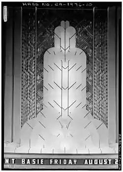 The Paramount Theatre was built as a movie palace, during the rise of the motion picture industry in the late 1920s. Palace was both a common and an accurate term for the movie theaters of the 1920s and early 1930s. In 1925, Adolph Zukor's Paramount Publix Corporation, the theater division of Paramount Pictures, one of the great studio-theater chains, began a construction program resulting in some of the finest theaters built. Publix assigned the design of the Oakland Paramount to 38-year-old San Francisco architect Timothy L. Pflueger (1892–1946) of Miller and Pflueger. The Paramount opened at a cost of $3 million on December 16, 1931.[6] Pflueger was also the designer of the Castro Theatre in San Francisco. The Art Deco design referred to the 1925 Exposition Internationale des Arts Décoratifs et Industriels Modernes in Paris.[7] The term Art Deco has been used only since the late 1960s, when there was a revival of interest in the art and fashion of the early 20th century.[8]