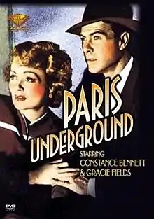 - ↑ Crowther, Bosley (20 October 1945). "The Screen: 'Paris Underground,' Constance Bennett Production, New Bill at Gotham". The New York Times. p. 17.