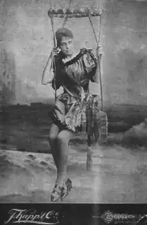 Van Tassel toured the American west, providing balloon ascensions at locations in Utah,[10] the northwest,[11] New Orleans,[12] California, Colorado, Kansas City, Missouri, Oregon, Washington and other locations in the west.[13] In Scientific American he suggested the possibility of a transcontinental balloon voyage across North America in 1886, something unheard of at the time.[14] Together with Thomas Scott Baldwin, Van Tassel co-invented a parachute, used by Baldwin to make the first parachute jump in the western United States on January 30, 1887 at San Francisco.[15] In competition with other daredevils such as Baldwin, Percival G. Spencer, James Price, and others, he later toured the world with his Van Tassel Troupe, associated with balloon ascensions and parachute jumps. His troupe is credited with the first successful parachute jump in Hawaii,[16][17] first balloon flights and parachute jumps by women in Australia,[18] early balloon flights in India,[19] the first flight in Bangladesh, Sri Lanka, and other locations in southeast Asia. Many of these events also helped to pioneer women's efforts in early aviation as a part of the Troupe.[20][21][22]