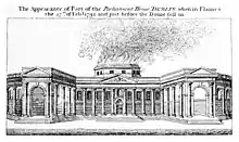 ![]() Drawing of the front of Parliament House with the dome, seen from street-level, in the 18th century | |