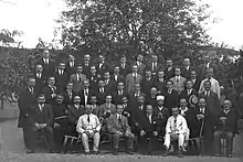 The National Council met for the first time on 27 March 1920 in newly established capital, Tirana, while the first session was opened by Mytesim Këlliçi until through vote Xhemal Naipi was elected, becoming the 1st Chairman of the National Council.[23] Although the first Albanian legislature extended its activity in a short period of time, it managed to pass some important laws. Some of the most important acts were the Lushnja Statute which constituted a constitutional law, as well as the new electoral law passed on 5 December. This law established the electoral system which was by indirect election with two rounds. In the first round, based on the administrative division according to the Districts of Albania, every 500 men would elect a delegate, who consequently in the second round will elect a total of 75 members of the National Council, thus making one member elected by about 12,000 eligible voters.[24] Although with many problems, this law paved the way for the creation of the first two Albanian parties which were: Partia Popullore (the Popular Party) led by Fan Noli, and Partia Përparimtare (the Progressive Party) led by Hoxhë Kadriu and Shefqet Verlaci.[24] The legislative activity of the National Council ended on 20 December 1920, when the Council was dissolved to give way to the first elections in Albania on 21 April 1921.[25]
