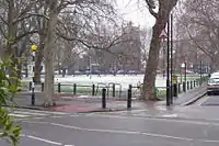 Parsons Green is a relatively small triangle of former common land in the Parsons Green area of the London Borough of Hammersmith and Fulham.[1] It is named after the rectors of the parish of Fulham whose residence once adjoined this patch of land and subsequently the name was adopted for the district. From the late 17th-century onwards, the area surrounding the green became the focus for fine houses and grounds built by merchants and the gentry within easy distance of London, yet in a more salubrious setting than the urban environs. A number of Georgian houses have survived, some of them replacing earlier Tudor and Elizabethan buildings.[2]