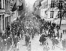 The troops then entered a densely populated area, where there were many mining villages. They found themselves facing the German army which was retreating while carrying out delaying actions. Meanwhile, rumours were already circulating that peace was imminent.[3]