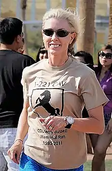 ![]() Lundvall at the 2011 Wildhorse Commemorative Run in honor of her deceased husband, Colonel Jerry Bussell | |
