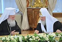 Patriarch Neophyte (Bulgarian: Патриарх Неофит, secular name Simeon Nikolov Dimitrov; born 15 October 1945 in Sofia) has been the Patriarch of All Bulgaria, head of the Bulgarian Orthodox Church since 24 February 2013.[1] Prior to his election, he was the Metropolitan Bishop of Ruse (2001–2013) and Bishop of Dorostol and Cherven (1994–2001).