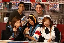 She portrayed Haruhi Suzumiya in the first series of live-action promotional videos launched by Bandai Entertainment on December 22, 2006, to announce the R1 license of The Melancholy of Haruhi Suzumiya. Here, she is credited as Patricia Lee, although she referred to herself as Patricia Ja Lee in the first videos.[1][2][3] Before the animated series' English cast was announced, it was speculated that she might be the voice of Haruhi as well. In July 2007, Patricia appeared at Anime Expo during the SOS Brigade concert. She was replaced for the second series of promotional videos by Cristina Vee.[4][5][6] Lee appeared in the Haruhi anime as the voice of Mizuki Okajima, the drummer of the all-girl student band ENOZ. Lee reprised this role in The Disappearance of Nagato Yuki-chan.