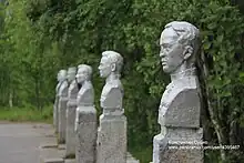 In addition to the title of Hero of the Soviet Union and the accompanying Order of Lenin, Galkin was twice awarded the Order of the Red Banner, on 27 January 1944, and 10 April 1944, the Order of the Patriotic War First Class on 11 March 1985, the Order of the Red Star, the Order "For Service to the Homeland in the Armed Forces of the USSR" Third Class, and various medals.[1] In addition to his military medals, he was also honoured with the unveiling of a bust at the Alley of Hero-Aviators of the Northern Fleet, at the Museum of Aviation of the Northern Fleet, in Safonovo, Murmansk Oblast.[4] This was one of 53 busts of Northern Fleet naval aviators who had been awarded the title of Hero of the Soviet Union.[1][10] He was interviewed by the Ryazan edition of Komsomolskaya Pravda in 2020, with the interviews serialized over four editions between July and August 2020.[2]