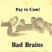 "Pay to Cum" (titled "Pay to Cum!" on the record cover) is the debut single by Washington, D.C.-based hardcore punk band Bad Brains. It was released in June 1980 on Bad Brain Records. The single was recorded in New York City by Jimi Quidd at his Dots Studios.