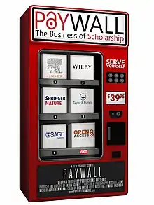Paywall: The Business of Scholarship is a 2018 American documentary film directed by Jason Schmitt. It documents the high profits and business practices of the academic publishing industry and the efforts of the open access movement to reform it. The film premiered at the Landmark Theater (E-Street) in Washington, DC on September 5, 2018, and was subsequently freely released online under a Creative Commons license in keeping with the spirit of the film.[2]