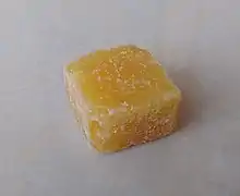 Pear-syrup candy, also known as lígāotáng (梨膏糖) or líqīnggāo (梨清膏), is a traditional medicine and confection from eastern area of the Jiangnan region of China, where it was traditionally used to relieve coughing, reduce sputum, and stimulate appetite. It has a crystal clear colour. Its main components are pear juice, honey and various kinds of herbs. With modern medical science, it is now rarely used to treat coughing; pear-syrup candy has become a souvenir and a snack, and is a part of Jiangnan culture.