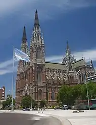 Benoit, as technical director of the urbanist project, designed most of the early public buildings in La Plata, as well. His designs for the La Plata Observatory, Economy Ministry, Police Headquarters, Engineering Department and Governors' Offices were completed shortly after the city's November 19, 1882, christening. Giving the city its first house of worship, the Church of Saint Pontian, Benoit designed the Cathedral of La Plata with Ernesto Meyer (the architect of the German Renaissance revivalist City Hall) in 1884. The Neogothic cathedral, the second-largest of its kind in the world, was only completed in 1999. He also designed La Plata Cemetery (established 1886). The tireless urbanist was also commissioned to design master plans for Quilmes, San Pedro and Mercedes, all important cities in the Province of Buenos Aires.[6]