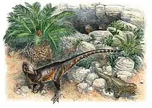 Pendraig (meaning "chief dragon" in Middle Welsh) is a genus of coelophysoid theropod dinosaur from South Wales. It contains one species, Pendraig milnerae, named after Angela Milner. The specimen was discovered in the Pant-y-Ffynnon quarry. In life it would have measured 1 m (3.3 ft) in length.[1][2][3]