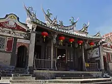 Magong grew up around the temple and was named for it.[2] Under Japanese rule, the port of Magong was a major base of the Imperial Japanese Navy. Its characters were changed in 1920 but it retained the same pronunciation in Japanese and English as before. In Mandarin, however, the names no longer match, since the tone of the first syllable shifted from first to third. The present temple is largely the result of a 1922 renovation,[4] mostly employing Tangshan,[5] Guangzhou, and Chaozhou artists.[8]