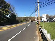 Pennsylvania Route 282 (PA 282) is an 11.9-mile-long (19.2 km) state highway in Chester County, Pennsylvania. The route, which is signed east-west, runs from PA 82 in West Nantmeal Township southeast to U.S. Route 30 Business (US 30 Bus.) in Downingtown. PA 282 follows Creek Road, a two-lane undivided road that winds along the East Branch Brandywine Creek through rural areas, for most of its length. The route passes through the communities of Glenmoore and Lyndell along the way. PA 282 was designated onto its current alignment in 1928.
