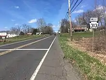 Pennsylvania Route 313 (PA 313) is a mostly 2-lane, 18-mile-long (29 km) state highway entirely within Bucks County, Pennsylvania. The western end of PA 313 is at an intersection with PA 309 and PA 663 in Quakertown. The eastern end is at an intersection with PA 263 in the Doylestown Township community of Furlong. PA 313 is signed an east–west road, although it runs almost purely northwest–southeast through most of its course. It is a major arterial road in central and northern Bucks County as it connects several communities including Quakertown, Dublin, and Doylestown.