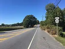 Pennsylvania Route 41 (PA 41) is a 22-mile-long (35 km) state highway located in southeastern Pennsylvania, United States. The southern terminus of the route is at the Delaware state line in Kennett Township, where the road continues as Delaware Route 41 (DE 41). The northern terminus is at U.S. Route 30 (US 30) in Gap. PA 41 runs northwest-southeast along a two-lane undivided road called Gap Newport Pike, passing through mostly rural areas of Chester and Lancaster counties and serving Avondale, Chatham, Cochranville, and Atglen. The route serves as part of the main road linking Wilmington, Delaware, to Lancaster, Pennsylvania.