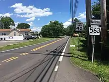 Pennsylvania Route 563 (PA 563) is a state highway in the U.S. state of Pennsylvania. The route runs 21.15 mi (34.04 km) from PA 63 in Upper Salford Township northeast to PA 412 in Nockamixon Township. The road runs through mostly rural areas in the northern parts of Montgomery and Bucks counties. Along the way, the route passes through the northern part of Perkasie and forms a concurrency with PA 313 in East Rockhill Township. North of here, PA 563 runs through Nockamixon State Park, heading to the northwest of Lake Nockamixon.