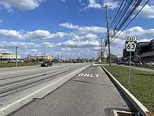 PA 63 turns northeast and forms a concurrency with US 1 on Roosevelt Boulevard, a wide boulevard with local-express lanes.[3][5] The road carries a 3-3-3-3 lane configuration as it heads northeast through areas of businesses and industrial parks.[3] After intersecting Byberry Road, the concurrency with US 1 ends at an unfinished cloverleaf interchange with Woodhaven Road, where PA 63 heads southeast onto the Woodhaven Road freeway. Woodhaven Road continues northwest of US 1 as an unsigned quadrant route numbered State Route 1022 to an intersection with Evans Street, which connects to Byberry Road, before coming to a dead end at an entrance to an industrial park.[5]