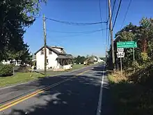The section of PA 662 between Douglassville and Yellow House was originally known as the King's Highway. In 1859, this road became a turnpike known as the Douglassville and Yellow House Turnpike, which existed until 1897.[4] When routes were legislated in Pennsylvania in 1911, present-day PA 662 was not legislated as part of a route.[5] By 1928, what would become PA 662 was paved between Douglassville and Yellow House, in the Oley area, and between Pricetown and Moselem Springs.[6] PA 662 was first designated by 1930 to run from US 422 in Douglassville north to PA 562 in Amityville, while PA 562 was designated along the portion of road between Amityville and Yellow House.[7] In the 1930s, PA 662 was extended north from Amityville to US 122 (now PA 61) in Shoemakersville. The route replaced the PA 562 designation between Amityville and Yellow House. At this time, the entire length of PA 662 was paved.[8] By 1966, PA 662 was rerouted to its current alignment through Oley along with PA 73, having previously passed through the community along Deturk Road, Friedensburg Road, and Main Street.[9][10]