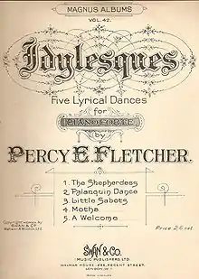 Fletcher also composed ballads, works for chorus, a string quartet, and suites for light orchestra, as well as the Passion of Christ (1922) and organ voluntaries for church use.[3] Intended to be performed by smaller, less experienced choirs, the Passion is sometimes used as an alternative to Stainer's The Crucifixion, though its influences derive more from Elgar than from Mendelssohn.[6] The orchestral suites (most of them also transcribed for piano), such as Rustic Revels (1918) and Sylvan Scenes (1921), suggest Fletcher's responses to Grieg and Coleridge-Taylor. Of the suites, Woodland Pictures gained widespread popularity, as did the waltz 'Bal Masque' from Parisienne Sketches (1914).[1][9] Some vintage recordings of movements from these suites have been re-issued by Cavendish Music.[10]