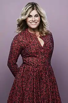 Wahlgren has been a television presenter for several shows, including Scenen är din, Söndagsöppet (both on SVT), Småstjärnorna and Baby Boom (both on TV4).[32][33] She and her brother Niclas also presented the children's show Nicke & Nilla on TV4.[34] Wahlgren had a role in the 1995 series Snoken on SVT.[35] She also dubbed several children's films, such as The Lego Movie (as the voice for Princess Unikitty), and voiced Misty, Melody and Delia Ketchum in several Pokémon films)[36] and she also voiced Sandy Cheeks, Pearl Krabs, Karen Plankton and Mrs. Puff in the animated Nickelodeon show Spongebob Squarepants until 2010. From 2016, she has participated in the reality series Wahlgrens värld (Wahlgren's World) which is broadcast on Kanal 5 and documents her life.[37] The series was continued with a third and fourth season in 2018;[38] a fifth and sixth season were broadcast in 2019.[39][40] In 2019, Wahlgren had a leading role as Santa's wife in Sveriges Television's Christmas calendar, Panik i tomteverkstan, opposite Per Andersson.[41] In 2023, Pernilla Wahlgren started presenting the SVT show Allsång på Skansen, replacing Sanna Nielsen. [42]