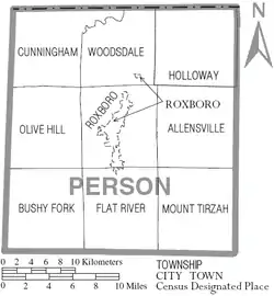 The Holloway-Walker Dollarhite House, Henry-Vernon House, Burleigh, and Waverly Plantation are listed on the National Register of Historic Places outside Roxboro.[6]