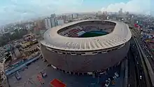 Peru play its home matches on the Estadio Nacional del Perú. Peru also plays at other stadium ,such as Estadio Universidad San Marcos and Estadio Monumental "U", both located in Lima. Estadio Monumental "U" was the chosen venue for the 2003 South American Women's Football Championship, in which Peru jointly hosted with Ecuador and Argentina. It held matches for the final round of the tournament, in which Peru achieved fourth place.