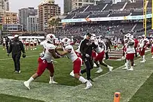On January 25, 2017, following the relocation of the Chargers NFL franchise to Los Angeles, it was announced that exploratory discussions were taking place regarding the possibility of playing the Holiday Bowl at Petco Park in future years. On June 24, 2021, the Padres announced a partnership with the San Diego Bowl Game Association for the Holiday Bowl to take place at Petco Park for a minimum of the next five years.[39] The first Holiday Bowl at Petco Park would have taken place on December 28, 2021, between the UCLA Bruins and NC State Wolfpack.[40] Hours before kickoff, UCLA withdrew due to positive COVID tests and the game was cancelled.[41] The 2022 Holiday Bowl was played as scheduled.