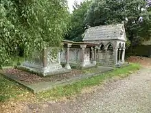 His wife died on 26 January 1865. He died less than a month later, on 22 February 1865. They are buried side by side in the churchyard of St Michael and All Angels, Edenham, Lincolnshire. The canopied tomb of their second daughter, Elizabeth Susan (d. 1853) is adjacent, and those of their son Albyric (d. 1870) and grandson Gilbert Heathcote-Drummond-Willoughby, 1st Earl of Ancaster (d. 1910), are nearby. All five tombs are Grade II listed, some jointly.[4][5][6]