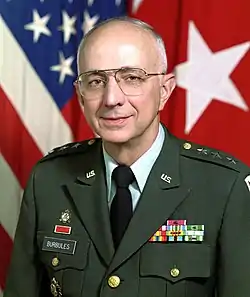 Burbules is a 1950 graduate of Chicago Vocational School, where he studied architectural drafting.[2] In 1962, he received a bachelor's degree in military science under the Bootstrap Program at the University of Omaha. Burbules also earned a master's degree in business administration from Babson College in 1970.[3] In addition, he graduated from the U.S. Army Ordnance School, the U.S. Armed Forces Staff College in 1971, and the Naval War College in 1976. General Burbules began his military career as an enlisted man in 1952. After completing leadership training with the 7th Armored Division at Camp Roberts, California, he entered Officers Candidate School and was commissioned a second lieutenant in the Ordnance Corps in May 1954.