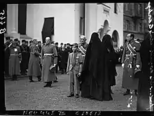 As the Regent's guards surrendered without fighting, Simović arrived to tell Peter: "Your Majesty, I salute you as King of Yugoslavia. From this moment you will exercise your full sovereign power".[6] The coup was very popular in Belgrade and Peter was well received by the crowds.[5] The people who had come out in Belgrade to show their support for the coup had a very pro-Allied character, many of the protesters waving British and French flags.[5] The crowds in Belgrade cheered Peter wildly as the 17-year-old king drove his car down the streets without his bodyguards to be greeted by his subjects.[6]