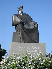 Under Peter Krešimir IV, the Croatian realm reached its peak territorially, earning him the sobriquet "the Great", otherwise unique in Croatian history.[2] He kept his seat at Nin and Biograd na Moru;[3] however, the city of Šibenik holds a statue of him and is sometimes called "Krešimir's city" (Croatian: "Krešimirov grad") because he is generally credited as the founder.[4][5]