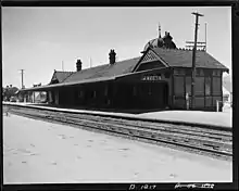 - Railcar passing through station, 1936
