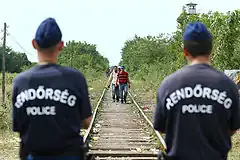 The Petra László incident took place near Röszke, Hungary, on 8 September 2015, during the European migrant crisis, when Hungarian camerawoman Petra László (Hungarian: László Petra, [ˈlaːsloː ˈpɛtrɒ]) was recorded kicking migrants who were fleeing border police.[1][2] László was fired after footage of the incident spread in the media and online.[1] In September 2016, she was indicted on charges of breach of peace, and was later found guilty.[3][4][lower-alpha 1] However, in 2018, the highest court in Hungary reversed the ruling, clearing László of the charges. In its decision, the court stated that her actions constituted only rowdy behaviour, which is a misdemeanour. By then, the statute of limitations for misdemeanours had already expired, and the case was therefore closed.[6]