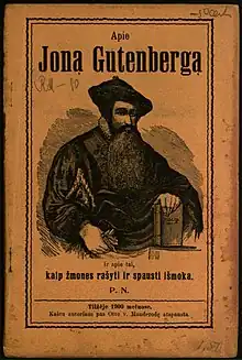 Many of Vileišis' books contained practical and specific agricultural advice and guides. In 1883, his first publication in East Prussia, was agricultural advice written by Ignacy Łyskowski and translated from Polish by Vincas Pietaris.[131] Vileišis also published booklets on cattle (1884), on gardens, hops, and bees (1885),[132] cows and milk (1892), horses and their illnesses (1893), potatoes (1900), oats (1902), etc.[133] In 1902–1903, he published three textbook-type booklets about selected crafts (including lathing, metal working, brush, wheel, and rope making, tanning of leather and furs).[134] He also published basic guides to laws relevant to peasants (two booklets in 1886 and 1887).[133] Vileišis commissioned three further legal booklets from Antanas Smetona in 1902–1903. He further sponsored the publication of 17 medical booklets by his physician brother Antanas.[135]