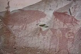 ![]() Rock art includes both humanoid and animal figures like the Giant Mekong Catfish | |