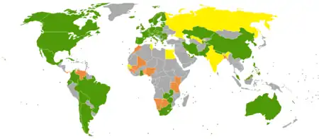 Brazil and Venezuela started the phase-out in 2005, and the European Union, Switzerland,[1] and Australia[2] began to phase them out in 2009.[3] Likewise, other nations are implementing new energy standards or have scheduled phase-outs: Argentina,[4] and Russia in 2012, and Canada,[5] Mexico,[6] Malaysia,[7] and South Korea in 2014.[8] A ban covering most incandescent bulbs in the United States took effect in 2023.[9]
