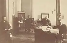 Spooner (center-left) pictured in his office in the Wisconsin State Capital, with associates.