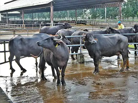 The Philippine Carabao Center (Filipino: Sentro ng Kalabaw sa Pilipinas[2] or Sentro ng Pilipinas para sa Kalabaw[3]) an attached agency of the Department of Agriculture, was established at Science City of Muñoz in Nueva Ecija province in 1992 to breed and cross carabao based on high-yield Murrah buffalo (native breed of Haryana state of India) in the Philippines as a multi-purpose animal that can be raised for milk, meat, hide, and draft.[4][5][6][7]