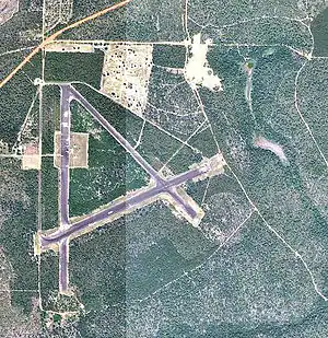 The airfield was apparently used during the late 1950s and early 1960s as part of the CIM-10 Bomarc program. Just north of the airfield are approximately 40 BOMARC Launch shelters, along with several support buildings, large lighting poles and the remains of a security fence (30°35′37″N 086°37′18″W / 30.59361°N 86.62167°W). It is unknown if any missiles were located at the facility. It was likely abandoned in the early 1960s when BOMARC funding was ended.