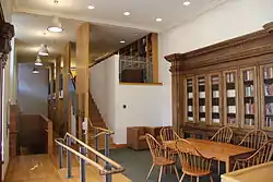 The renovation of 2003-04 was extensive, and included the reconfiguration of student suites, student activities areas, and dining facilities; new bathrooms, new interior finishes and lighting; additional student rooms in a new Upper Court building; complete replacement of all mechanical and electrical systems; new security, fire protection, and information technology systems; new elevators, ramps, and other enhancements to accessibility; and repairs to windows, masonry, roofs, and gutters.[18] The renovation also included enlarging the library and adding a mezzanine level computer cluster.[18] The completion of the additional building, called "Upper Court", increased Pierson College's dorm space capacity from 264 to 310.[18] During the renovation, students who would otherwise live in Pierson College, lived in what is called "Swing Space," dormitories located near Payne Whitney Gymnasium that resemble a cheap hotel and do not include a dining hall.[18]
