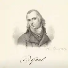Pieter Gaal (19 July 1769 in Middelburg – 13/18 January 1819 in Middelburg)[1] was a Dutch painter, the son of Thomas Gaal. Gaal came from a family of painters from the Zeeland area of the Netherlands, his earliest ancestor was a knight called Florens Ghale van Hoesbroec, though his father was born in what is now Belgium. His son Jacobus Cornelis Gaal was also a painter, painting portraits such as "Junges Madchen in Weissen Kleid Beim Einkleid" a portrait of a young woman being dressed by a maidservant. Gaal's main focus were "landscapes with cattle and figures furnished, a hobby portraits, living and dead game and genre pieces". He spent time in London (1789–1791), studied in Paris (at the Académie des Beaux-Arts de l'Institut de France in 1791), and traveled to paint in Italy, Switzerland and Germany.[1]