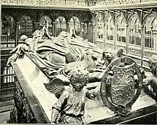 After the success of this work, he was given the commission for the magnificent effigial monument for Henry VII and his queen, which still exists in the Henry VII Lady Chapel of Westminster Abbey. This appears to have been begun in 1512, but was not finished till 1517.[5] The two effigies are well modelled, and there can be no doubt the head of the king is a fine posthumous portrait. John Pope-Hennessy called it "the finest Renaissance tomb north of the Alps".[5]