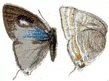 - ↑ Savela, Markku (September 5, 2018). "Pilodeudorix caerulea (Druce, 1890)". Lepidoptera and Some Other Life Forms. Retrieved December 16, 2019.