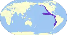 This species is pelagic, occurring in the Pacific Ocean. It predominantly nests on offshore islands off Chile, i.e. Mocha Island. It is a transequatorial migrant, moving toward subarctic waters of the Pacific after raising its young. It is fairly common well off the West Coast of the United States during the country's warmer months.